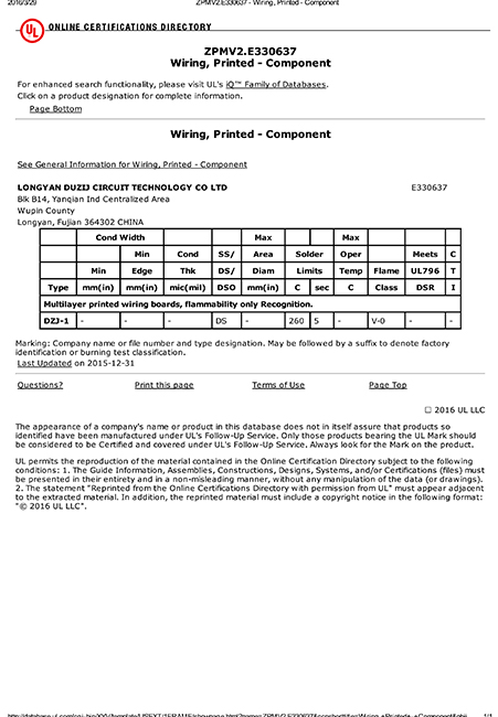 工廠搭建了ISO-9001、T/S16949、ISO14001的管理體系并通過認證,產(chǎn)品符合CQC、UL、IPC、RoHS等